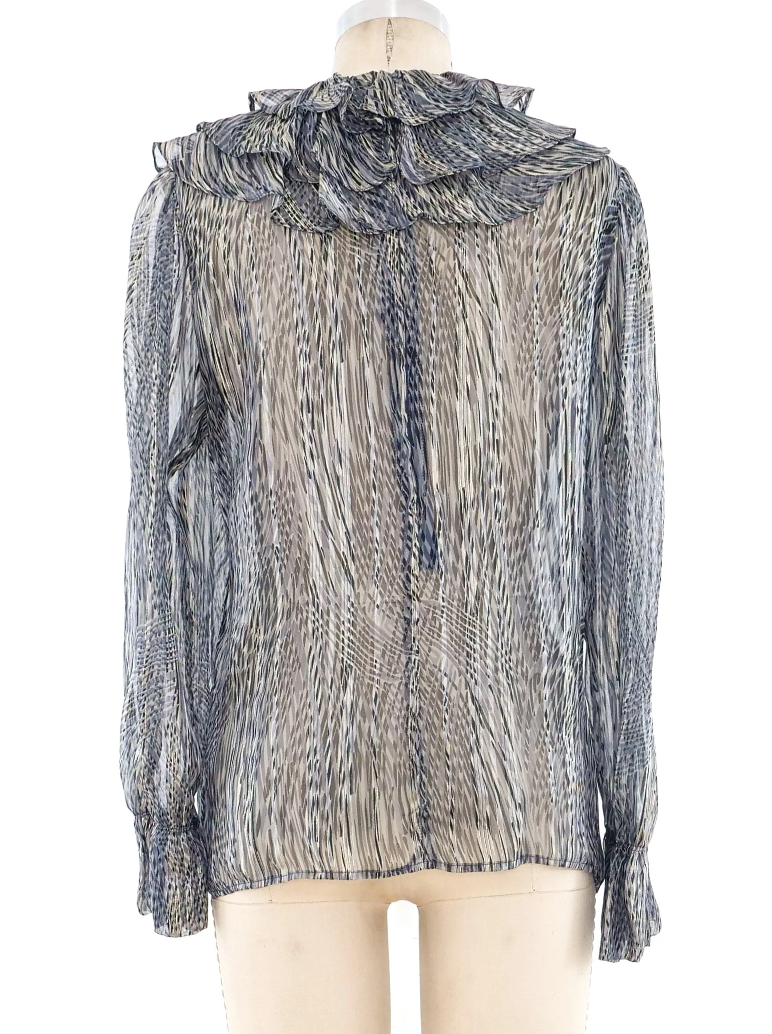 Abstract Print Ruffled Silk Top