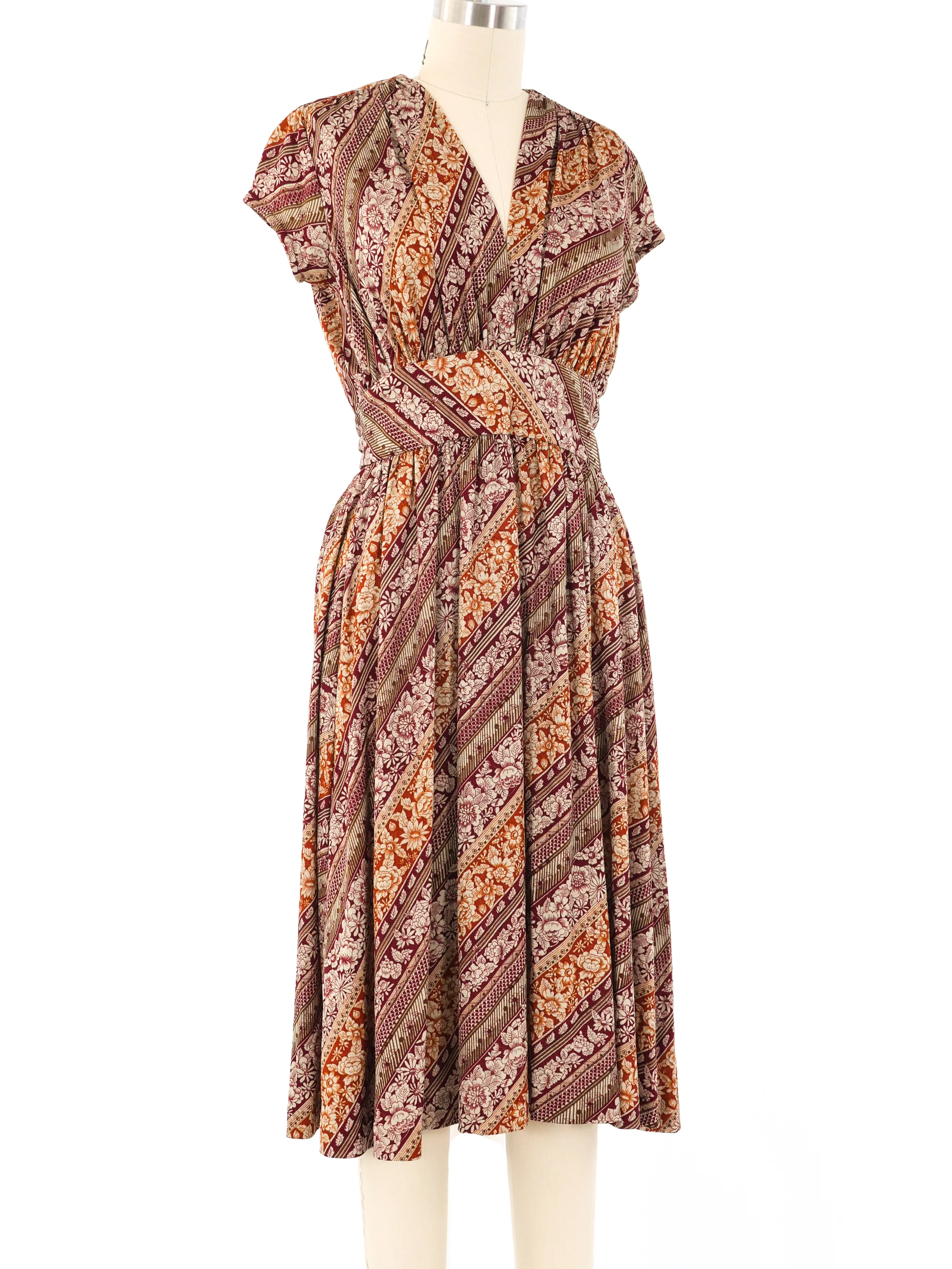- Autumnal banded floral printed jersey midi dress